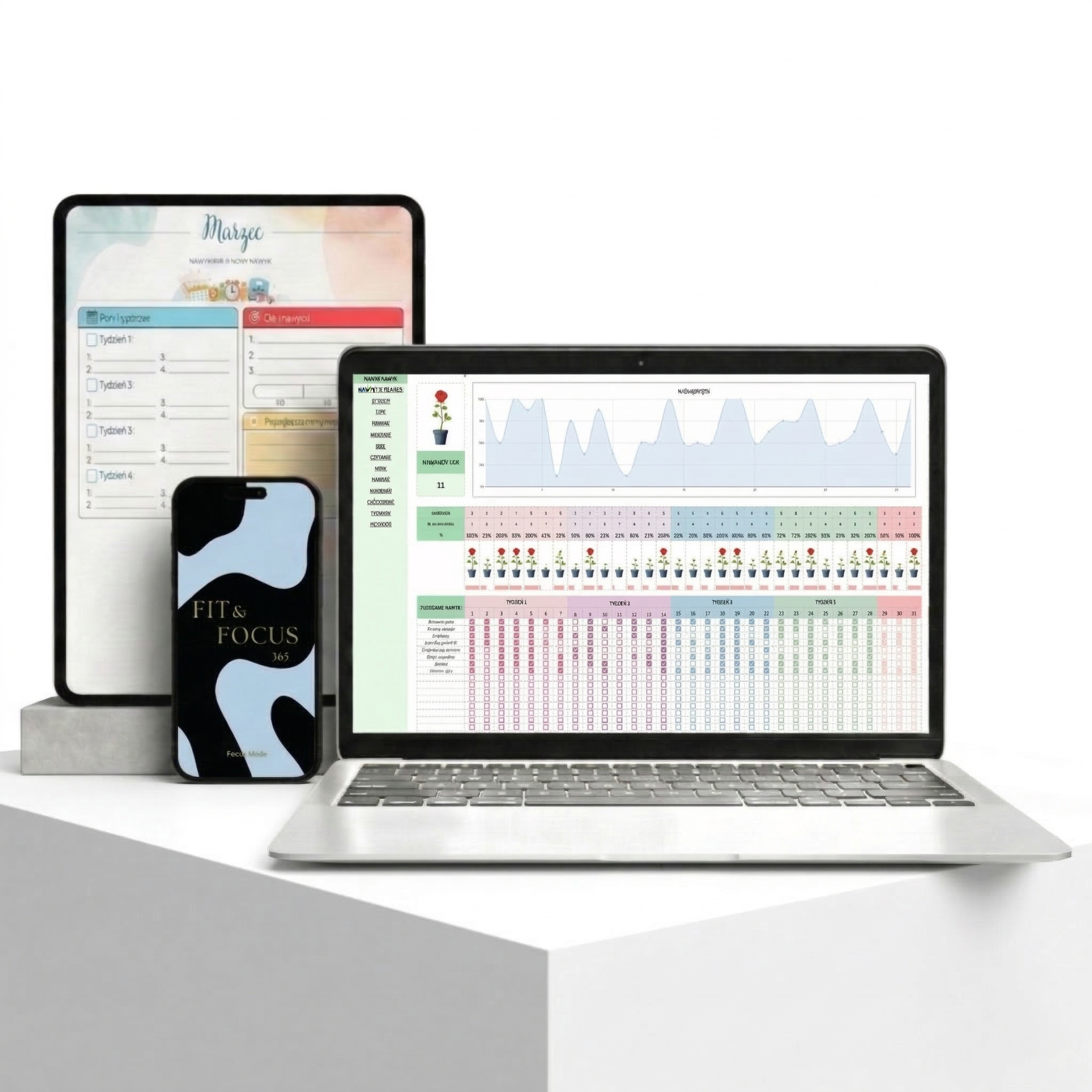 Fit&Focus 365 to kompletny planer, który pomoże Ci uporządkować cele, treningi, nawyki i codzienne działania przez cały rok. Dzięki przejrzystemu systemowi planowania zamienisz duże cele w małe kroki i będziesz konsekwentnie budować swoją najlepszą formę – dzień po dniu.