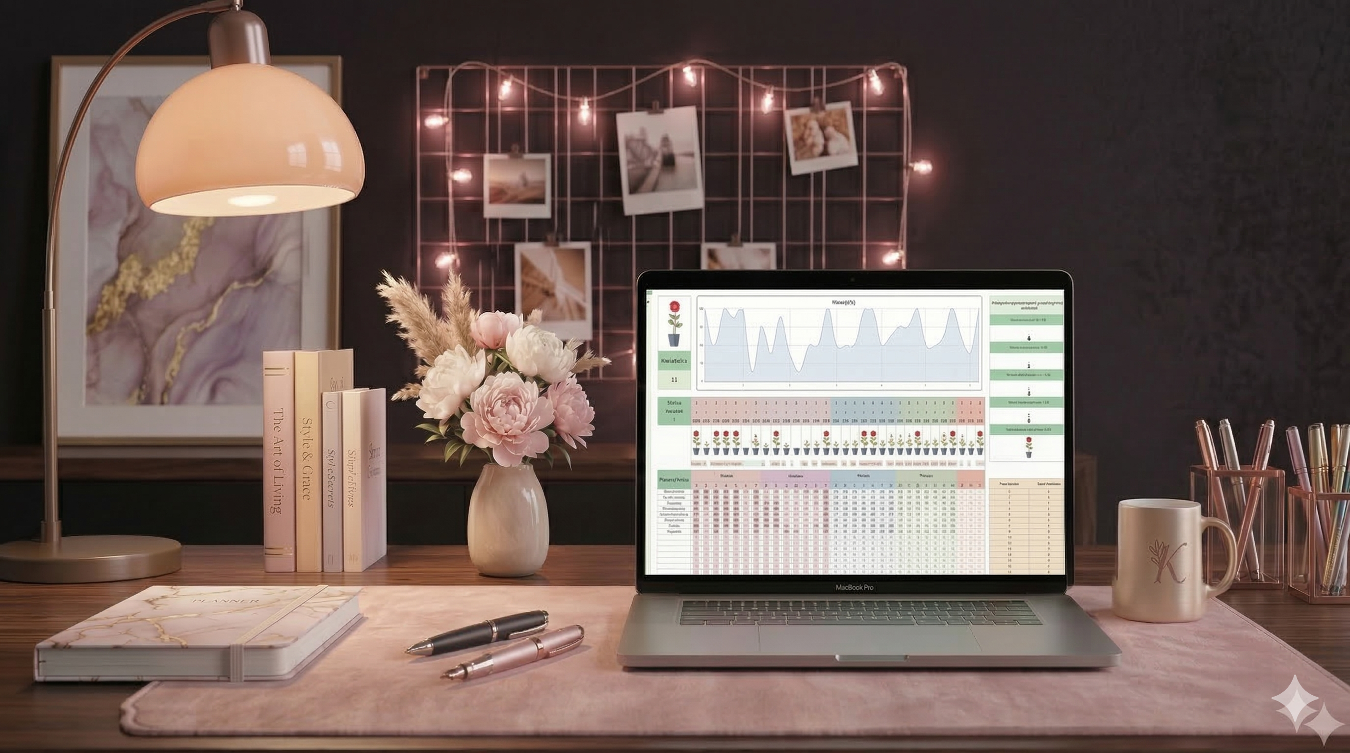 Piękny design, łatwy w użyciu, wersja PDF + interaktywny Arkusz Google Sheets